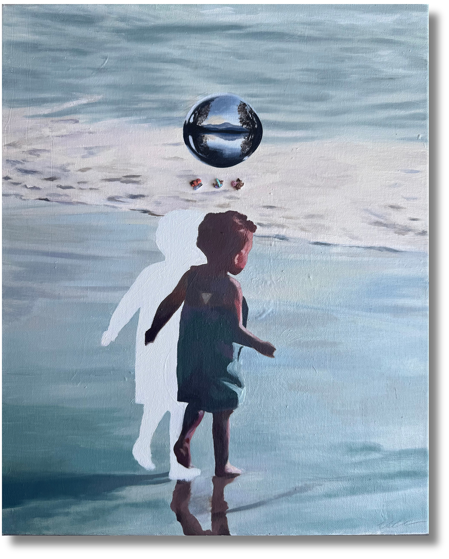 In Through the Looking Glass, Patton turns to mirrors as both surface and subject. The reflective ground requires the artist—and the viewer—to confront the image and oneself simultaneously.